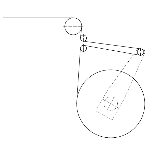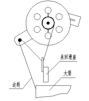 卷料回收方式由卷料電機(jī)、檢測開關(guān)等組成。自然狀態(tài)下電機(jī)轉(zhuǎn)動,當(dāng)擺臂下降觸碰到檢測開關(guān)后,電機(jī)停止轉(zhuǎn)動。下一個步進(jìn)后,擺臂上揚(yáng),電機(jī)轉(zhuǎn)動,擺臂下降碰到檢測開關(guān),如此反復(fù)。邊料纏繞方式如右圖所示。